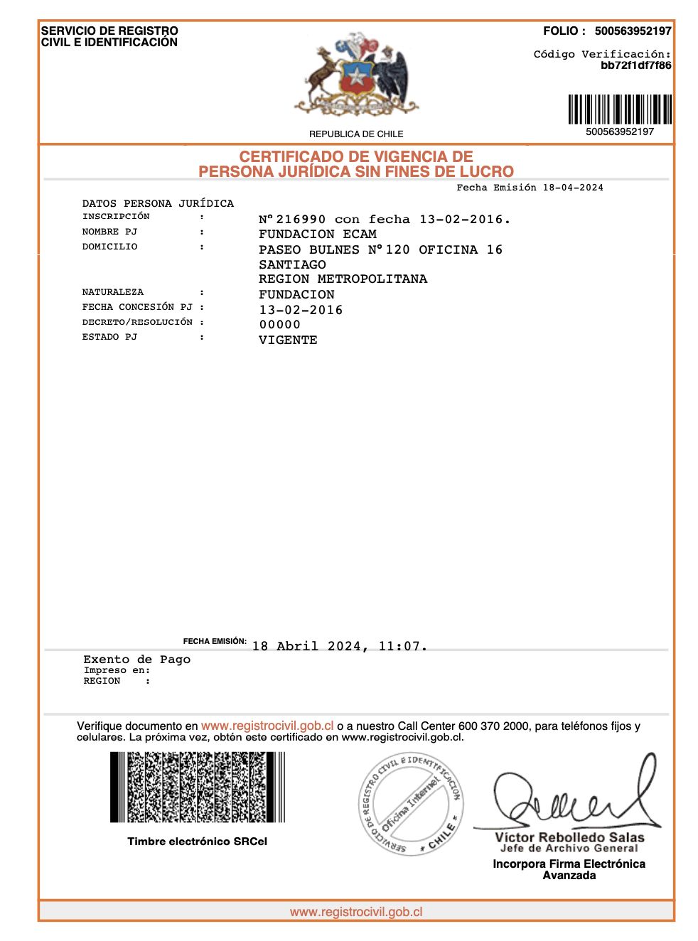 | Número de inscripción y registro |