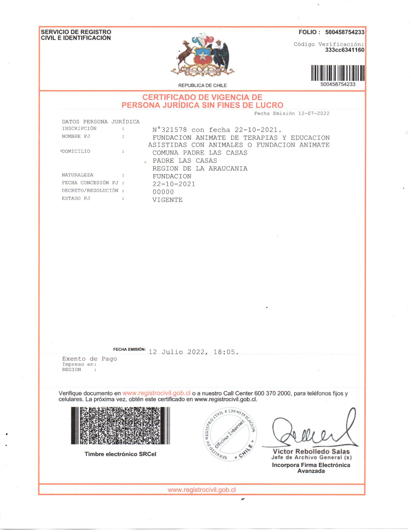 | Número de inscripción y registro |