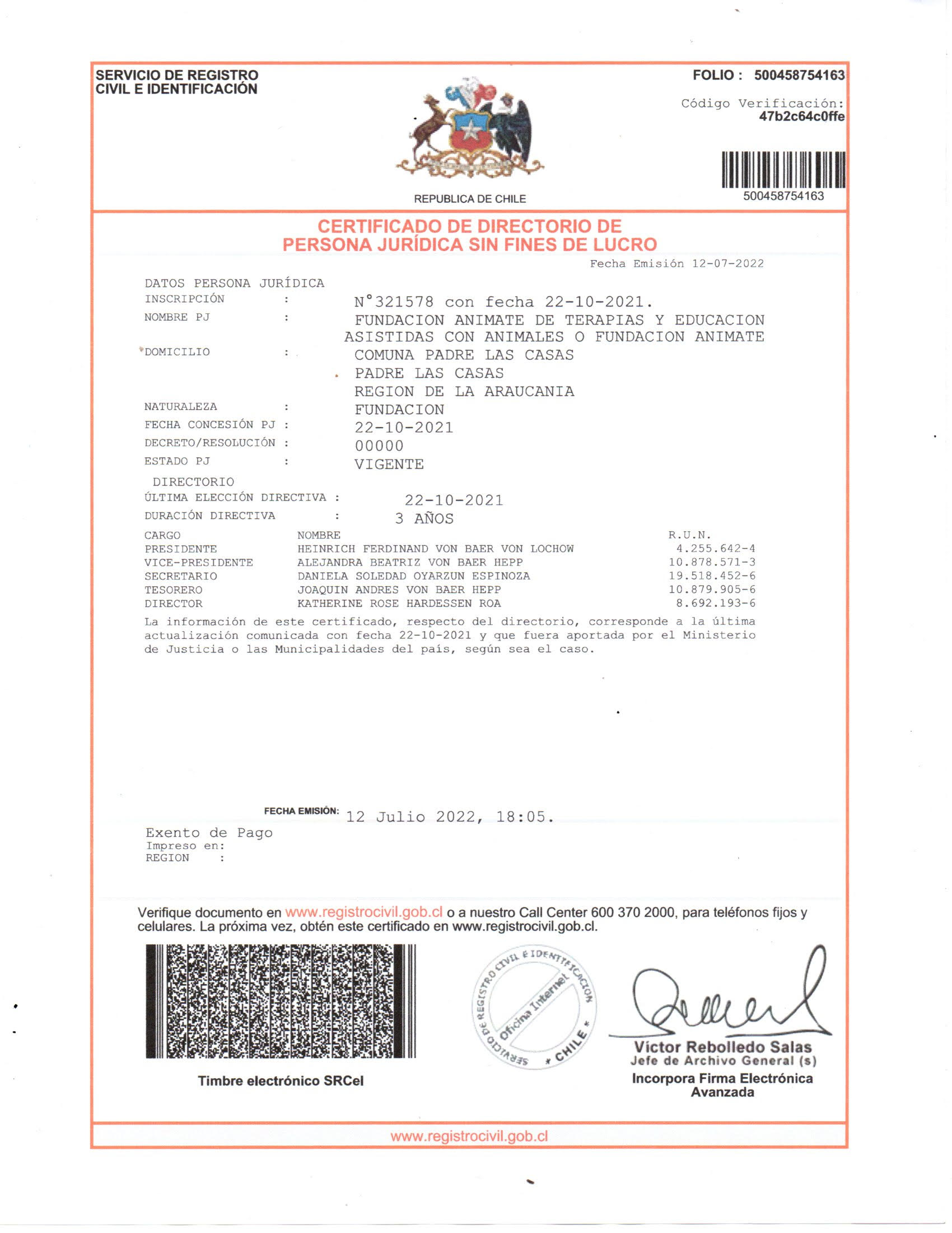 JOAQUIN ANDRES VON BAER HEPP Ascendientes o descendientes hasta 2.º grado de consanguinidad o afinidad